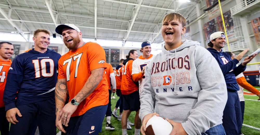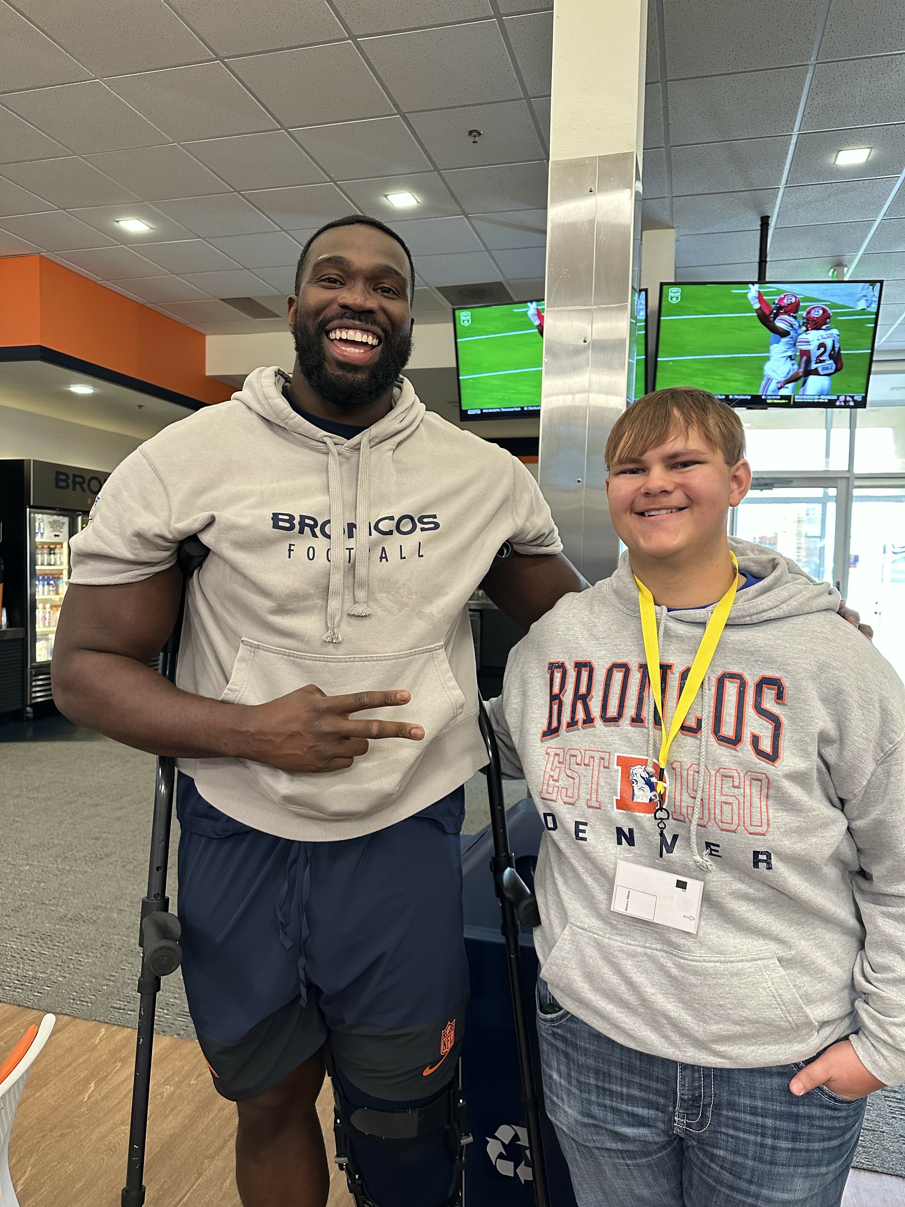 Peyton’s mom shared in part, “We had a blast at Dove Valley training facility seeing all the stuff and meeting the players and coaches. Peyton was thrown a pass for a touchdown on the practice field which he thought was super cool. Being on the field before the game was awesome and then the win was just a perfect ending to an amazing weekend."