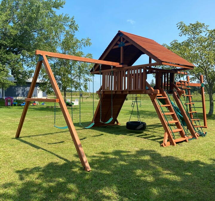 I cannot thank Make-A-Wish enough for the generous donation of a playset for Oaklyn. You don’t think about all the simple things ‘normal’ kids get to do until you have a child you need to pay extra attention to. Oaklyn’s brother and sister got to go to parks and school, but we never took Oaklyn. She was either between heart procedures and we needed to keep her healthy for surgery or COVID was around and was such a high concern with the potential clotting issues that may cause if she caught it. Once COVID hit, parks shut down and we tried to keep our other kids healthy by limiting exposure. When the Make-A-Wish opportunity arose and we asked Oaklyn what she wanted, there was no hesitation that she wanted her own park! What a wonderful gift for her to grow with and share with her siblings.