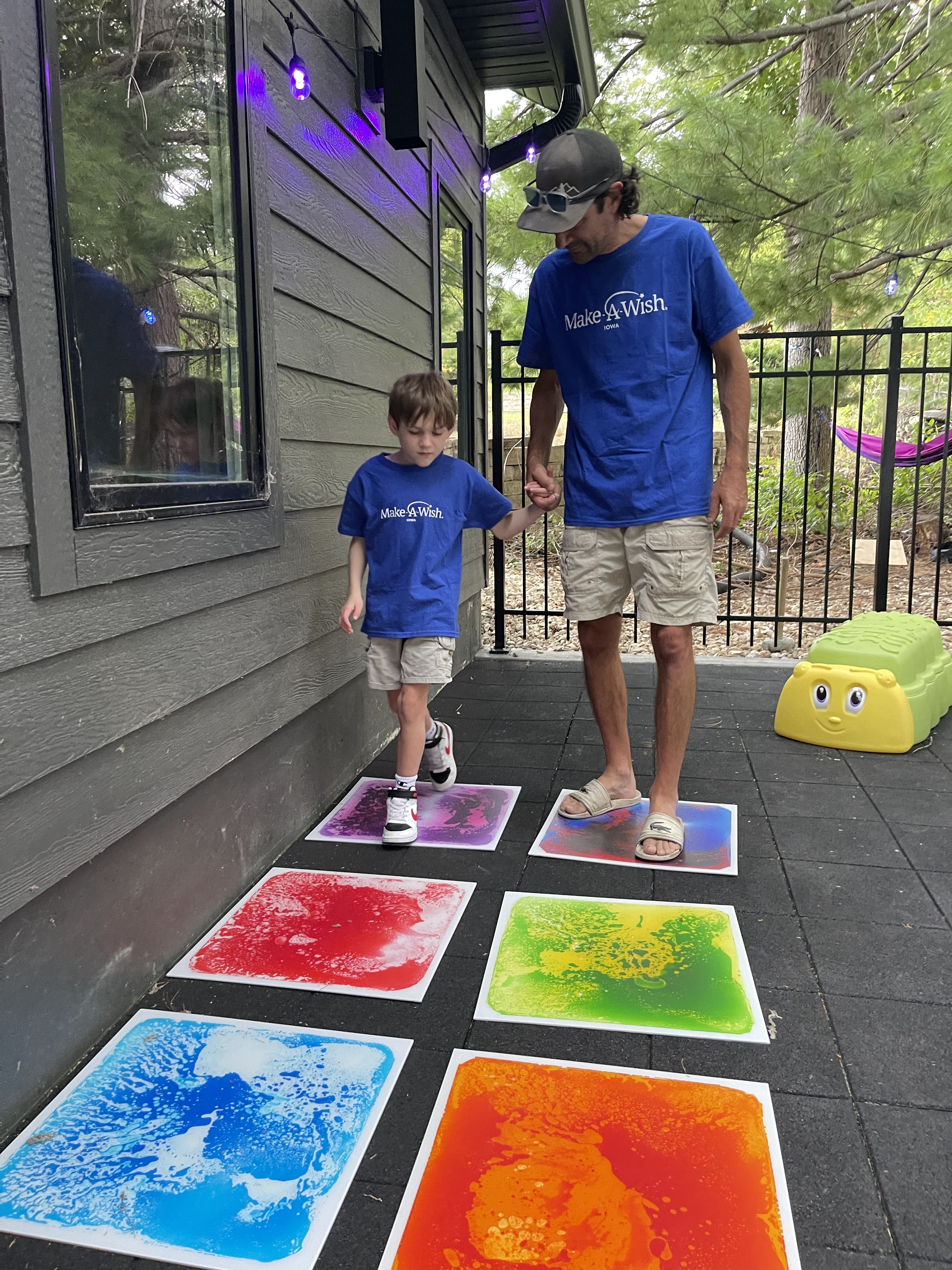 He needed something that if he fell he would not get hurt. The wish team did an amazing job creating a rubber ground with no seams that allowed him to have a space that is safe and fun and perfect for sweet Noxx!